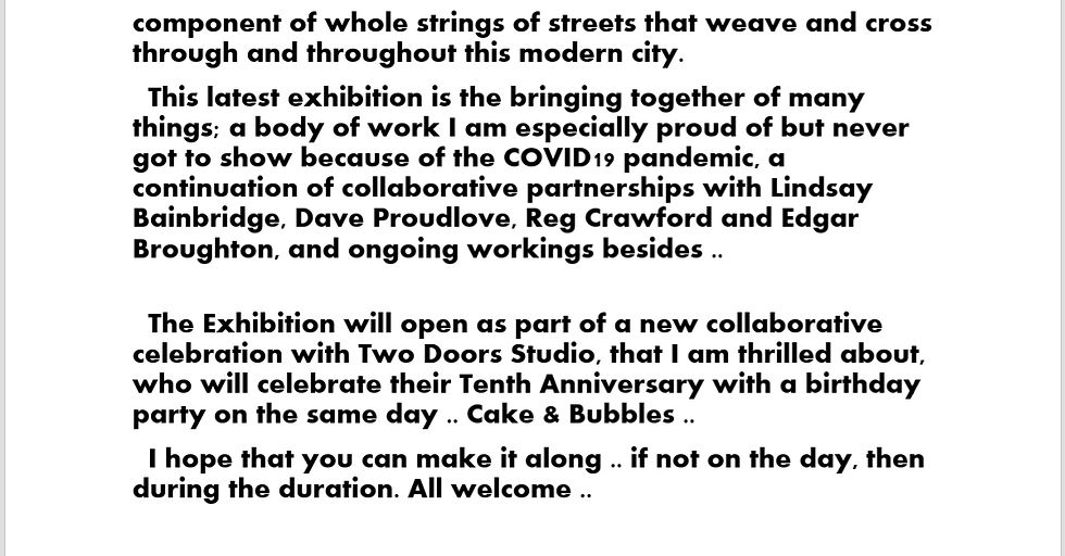 The works have started going into the gallery incrementally, and a significant selection are now on the wall as I prepare more works to go up. The exhibition will be launched to coincide with Two Doors Studio 10th Anniversary 'Birthday' Party, a date being prepared as we speak .. but you can go and have a look now! Handcrafted Gifts Cards & Artwork | Two Doors Studio | Stoke-on-Trent